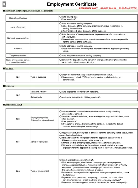 • Employment certificate