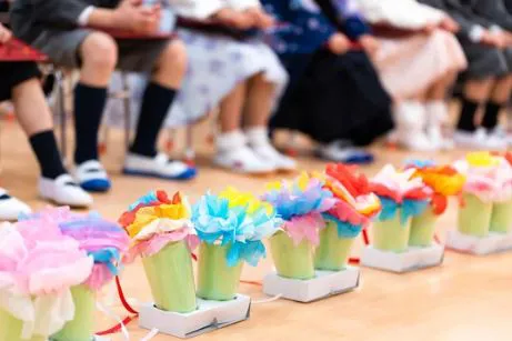 You’ll often see organized seating, a stage setup, school or class songs, and longer speeches from the principal or teachers. Some kindergartens treat the ceremony almost like a small school event, with decorations, performances, and a more structured flow. - Nursery (Hoikuen) ceremonies are usually simpler and shorter.